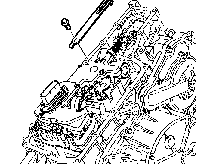 4. Remove bolt and manual shaft detent assembly from the control valve body assembly.