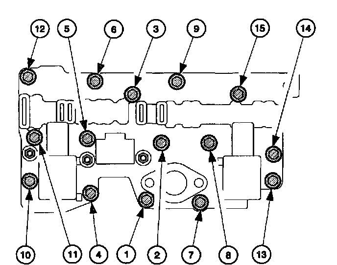 7. Remove 15 black bolts from control valve body assembly.
