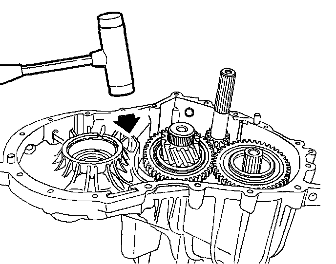 2. Position transaxle on a bench so the bearings are resting on a flat surface.