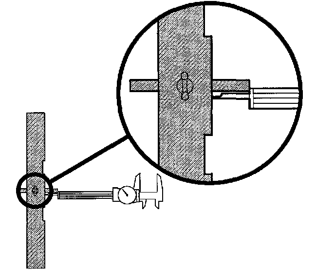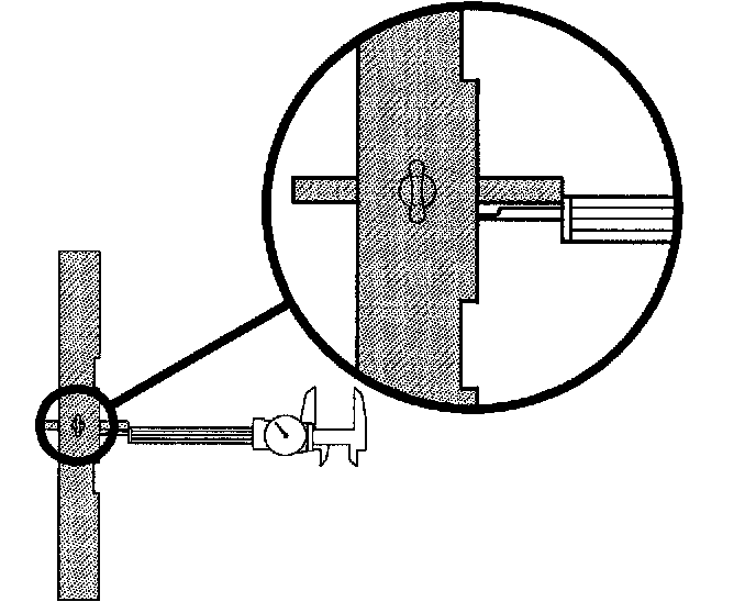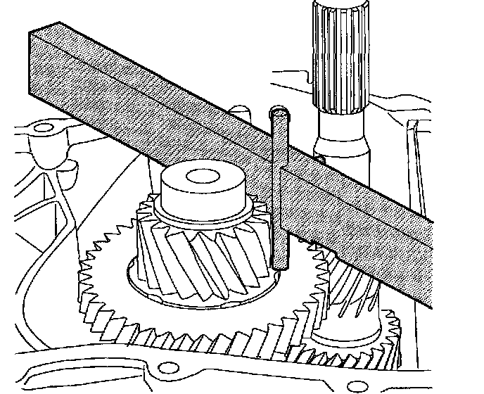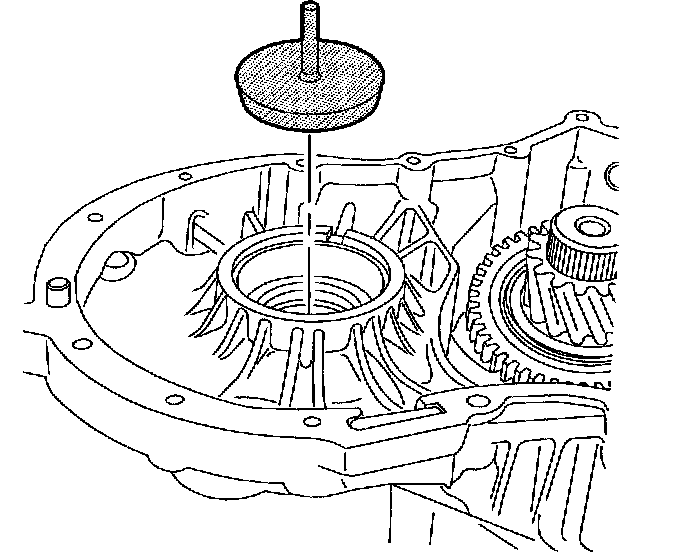 4. Measure the distance of transaxle case parting surface to output shaft gear thrust washer surface using Gauge Assembly J44388-1.