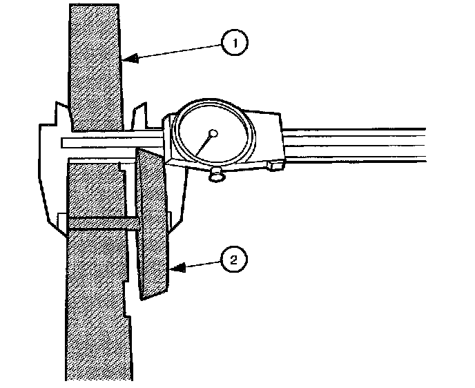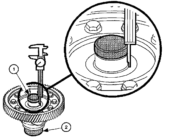 25. The distance from the top surface of Gauge Pin J44388-3 (1) to the land of right differential side bearing shim is measured and recorded (measurement F).