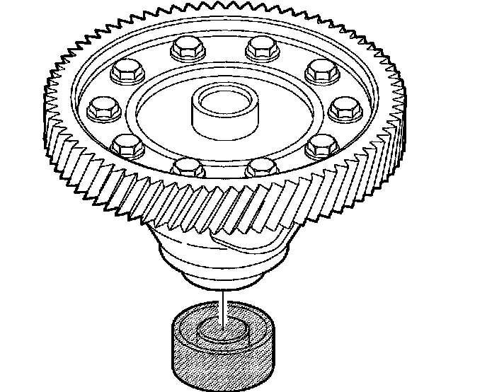 17. Place differential assembly onto Gauge Installer J44388-4 to provide a steady measuring surface.