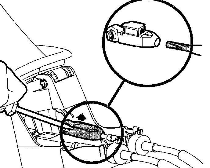 5. With shift cable ends in adjusters, adjust cables by pushing shifter neutral lock clip. Move shifter slightly to center lock clip.