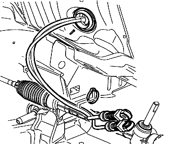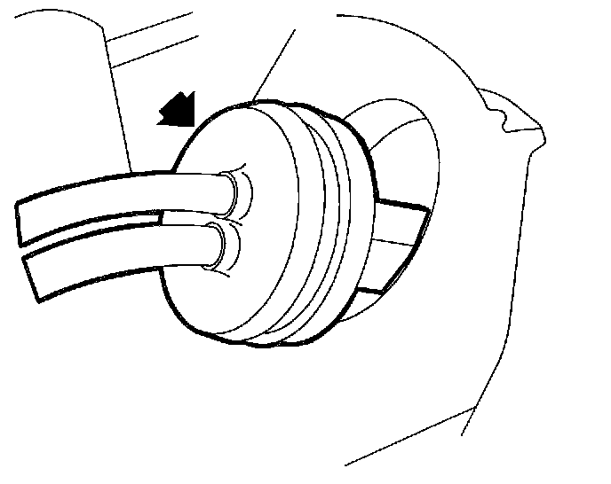 1. Install cables from interior of vehicle to underhood area. Ensure that shift cable pass-through grommet is properly seated and grommet arrow is pointing up.