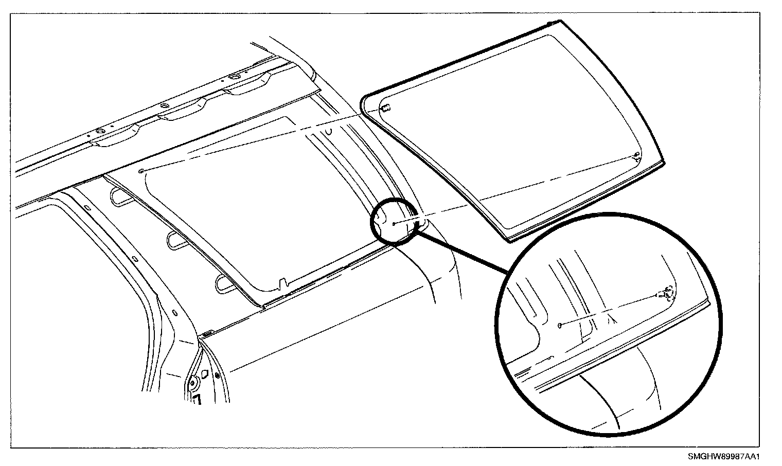 6. Place the quarter window into position by fitting alignment pins into alignment holes in the spaceframe.