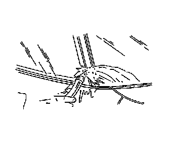 Important: Do not apply the black #3 primer to the existing bead (1) of the urethane adhesive on the pinchweld flange. Apply the primer only to nicks, scratches or the primed surfaces.