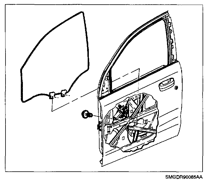 2. Install window into primary glass run channels and rest window on regulator guide plate.