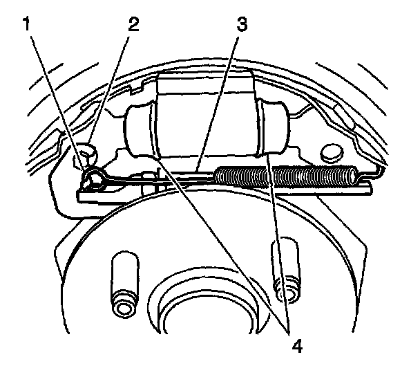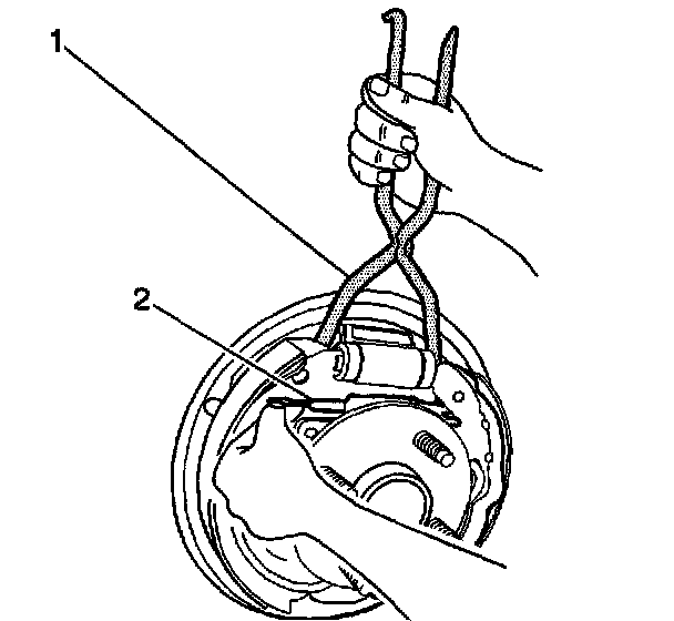 2. Install the adjuster assembly (2) to the brake shoes.