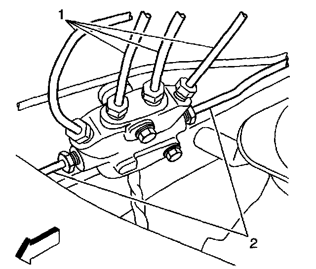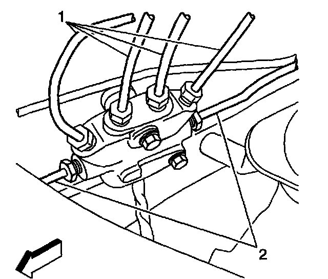 Important: Prior to disconnecting the brake pipes from the proportioning valve assembly, note the locations of the brake pipes to the valve assembly, to aid during installation.