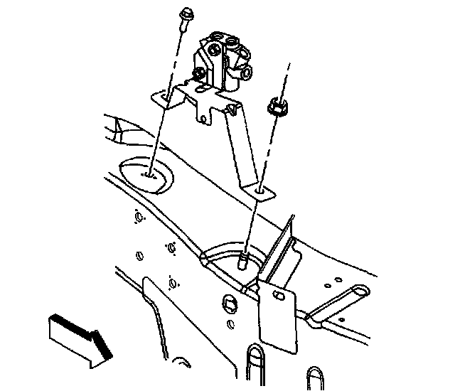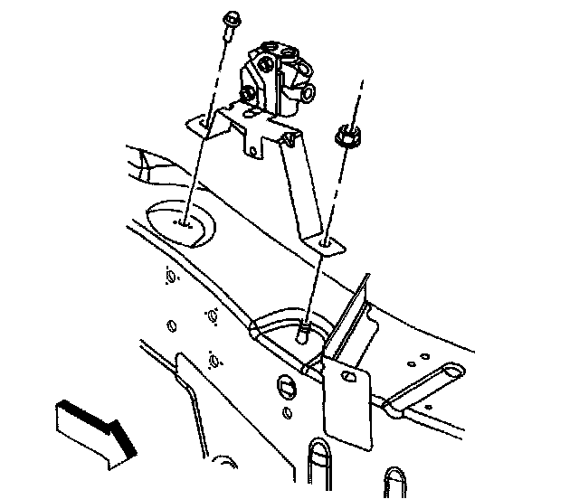 8. Remove the proportioning valve assembly bracket mounting nut and mounting bolt.