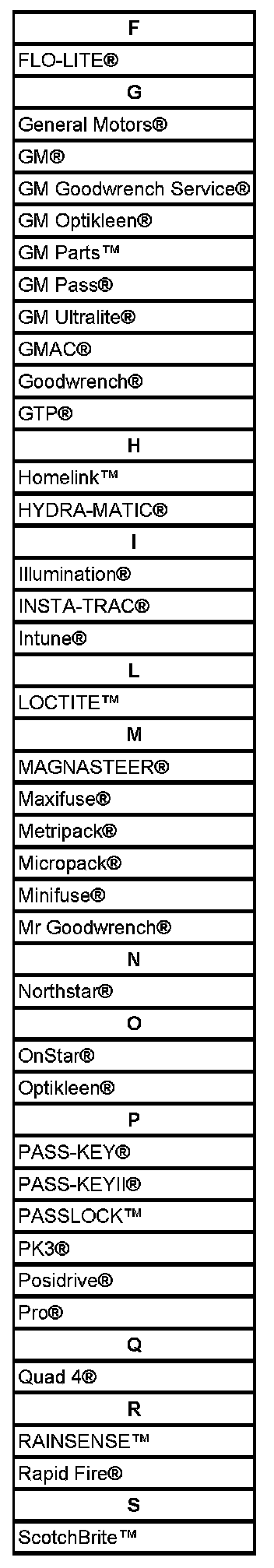 Listed are Registered Trademarks ((R)) or Non-Registered Trademarks ((TM)).