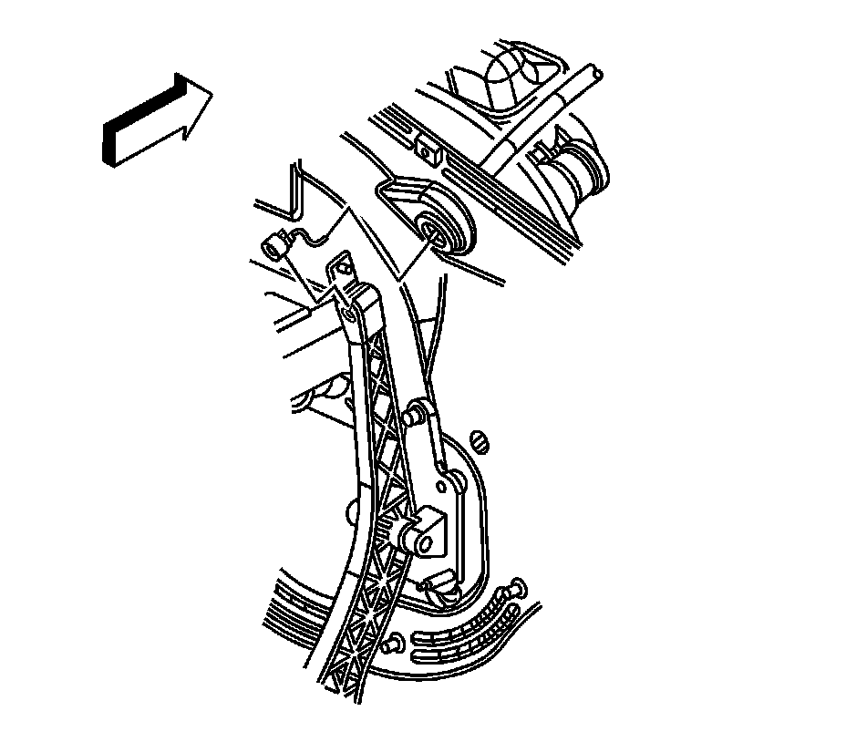 1. Connect the accelerator cable end to the accelerator pedal assembly. Ensure that the cable end retainer is fully seated to the accelerator pedal.