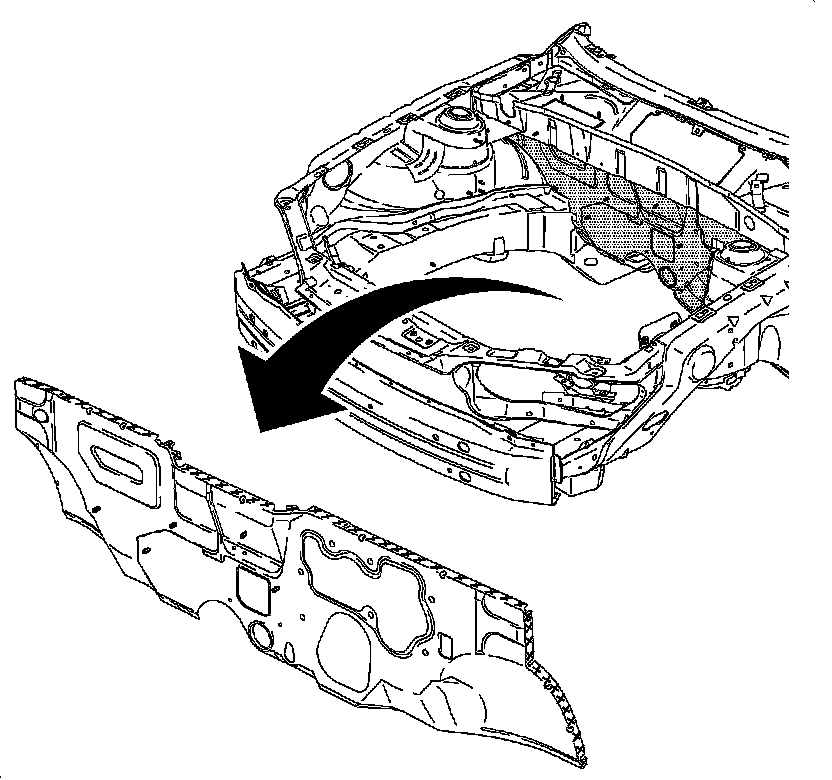 6. Note the location and remove the sealers and anti-corrosion materials from the repair area, as necessary. Refer to Anti-Corrosion Treatment and Repair () in Paint and Coatings.