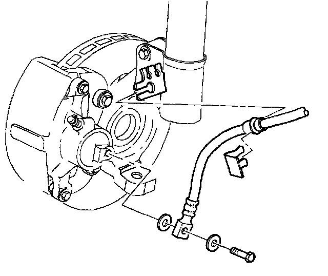 3. Remove the brake hose from the caliper. Plug the openings in the caliper and the hose to avoid fluid loss and contamination.