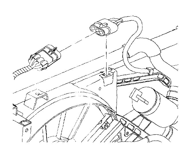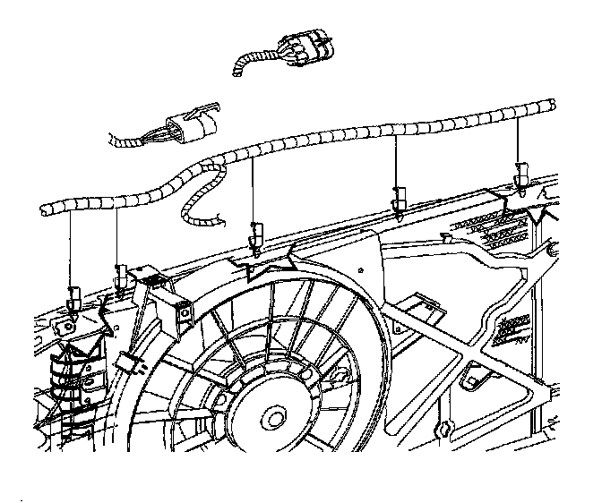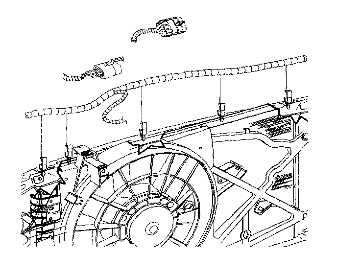 6. Remove the wiring harness from the clamp on the fan shroud.