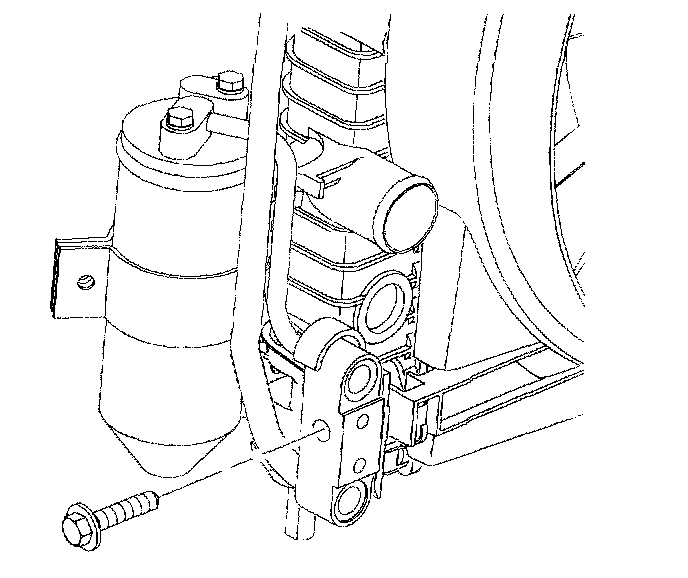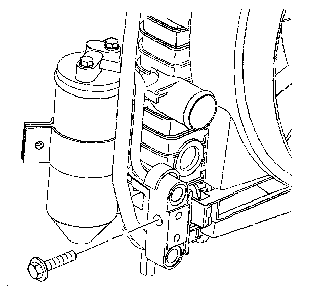 23. Remove the condenser block bolt from the radiator end tank.