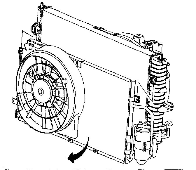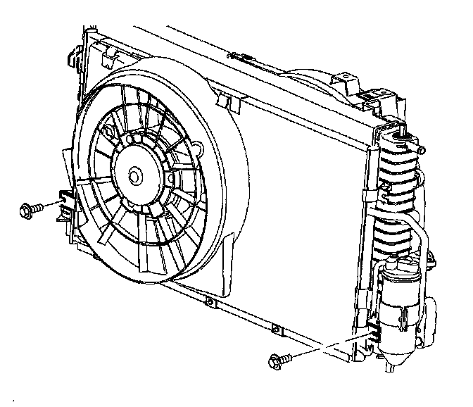 Important: Verify that the pusher fan electrical harness is not between the fan shroud and the radiator.
