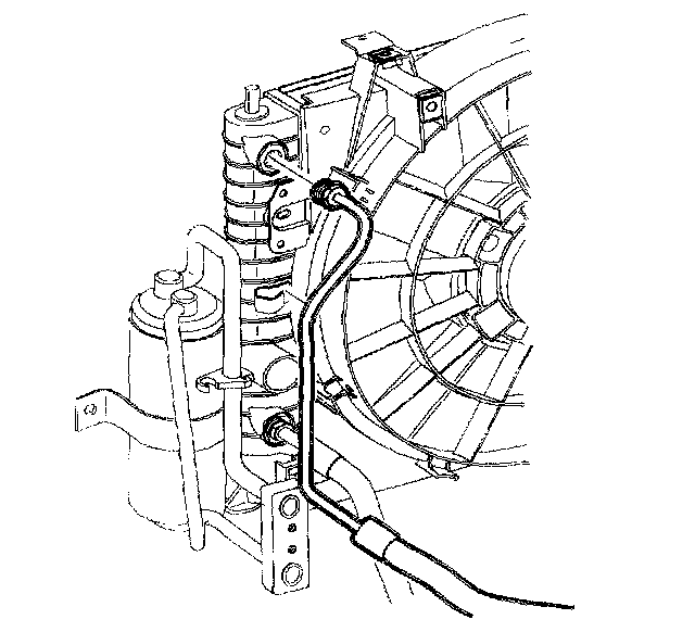 18. Install the upper transmission cooler line to radiator.