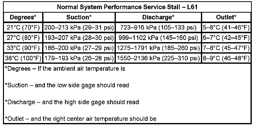 - To ensure accurate pressure and temperature readings make sure the vehicle is properly set up to run the performance test. Refer to vehicle set up. ALL TEST PARAMETERS MUST BE FOLLOWED TO OBTAIN ACCURATE READINGS. Confirm system performance by touching the suction and discharge pipes at the compressor. The suction pipe will be cold and the discharge pipe will be hot.