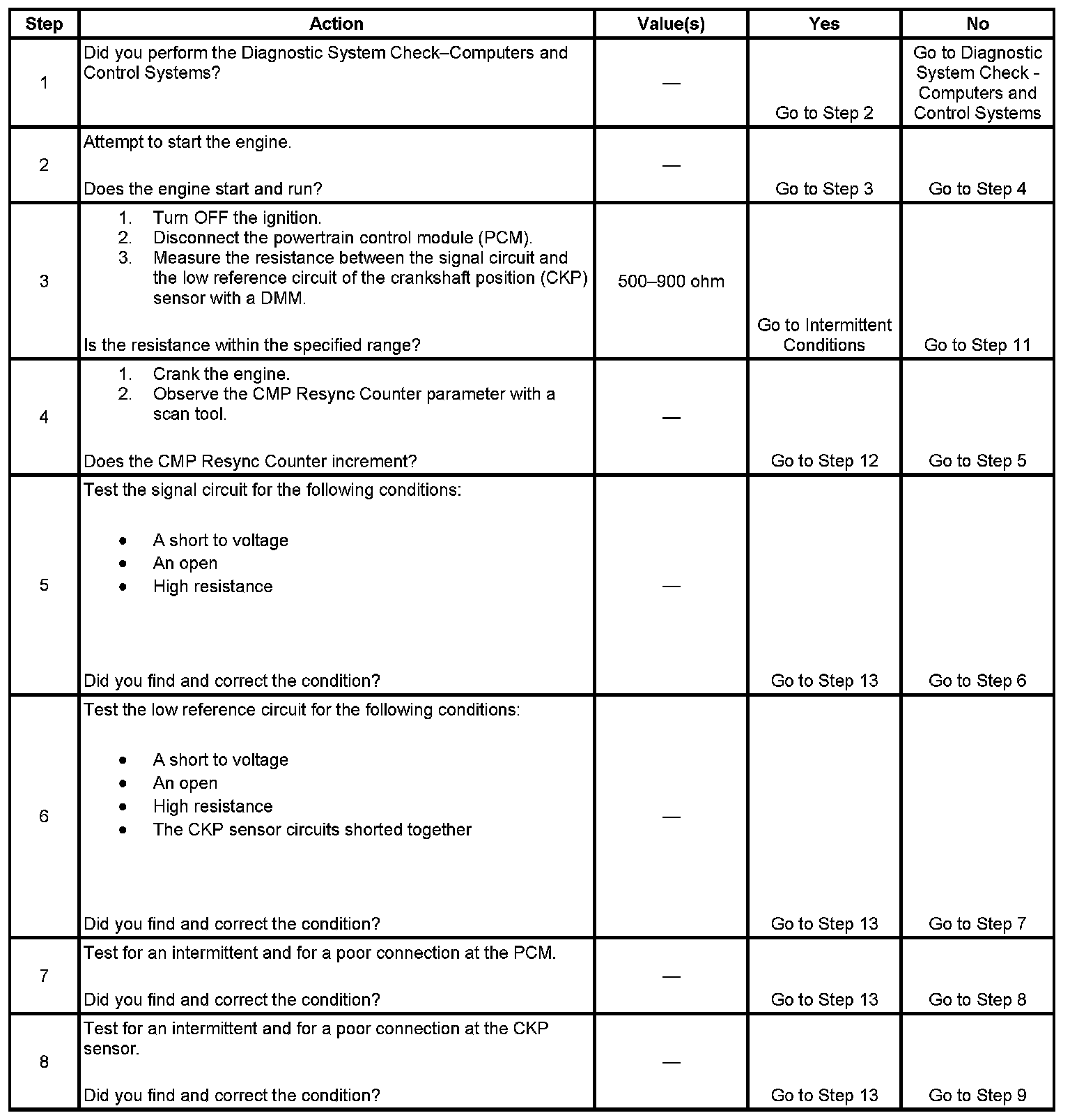 - The CKP sensor signal