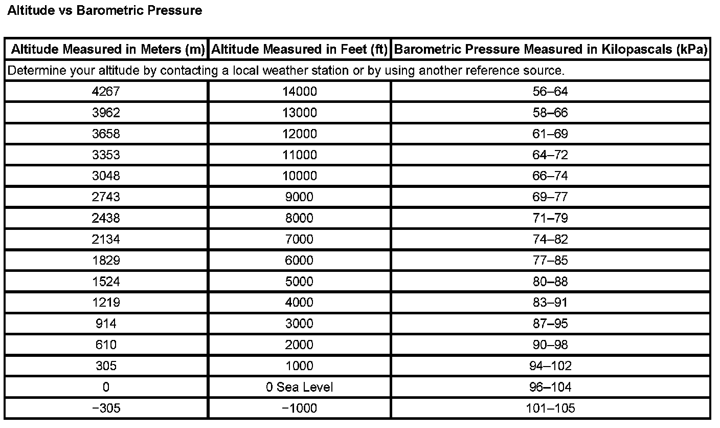Pressure, Vacuum and Temperature Specifications