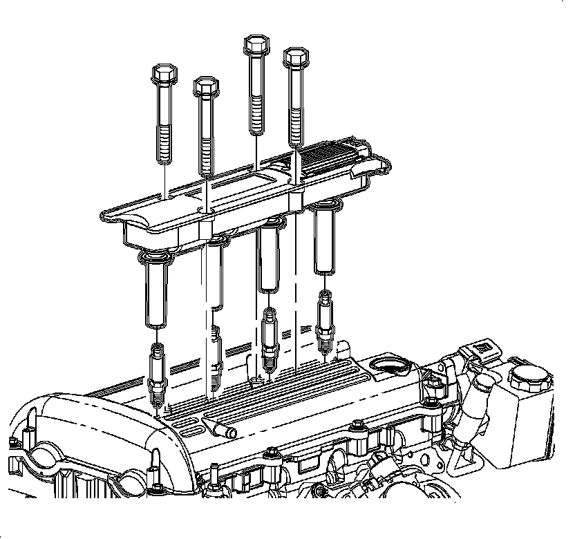 3. Install the ignition coil housing to cam cover and attachment bolts.