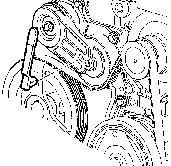 3. Install the J 44811 onto the tensioner and unload spring tension from the tensioner while positioning the belt.