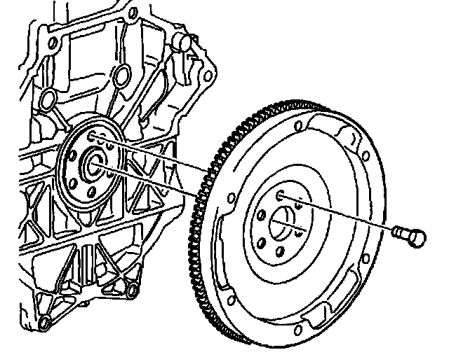 1. Install the flywheel and the new flywheel-to-crankshaft bolts. Hand start the bolts.