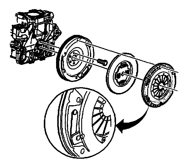 3. Install the clutch disc and the clutch pressure plate assembly to the flywheel.
