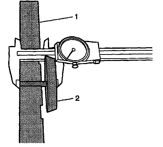13. Tighten the thumbscrew on the J 44388-1 (2) to retain the J 44388-2 (1) gage rod.