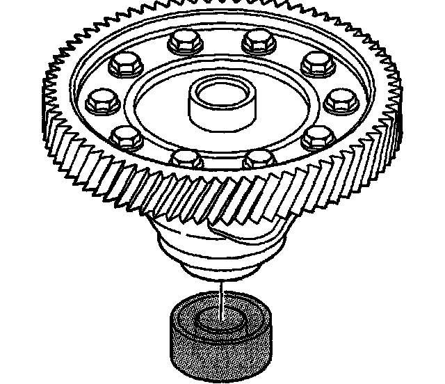 10. Install the J 44388-2 into the left differential side bearing race. Ensure that the J 44388-2 is fully seated into the left differential side bearing race.