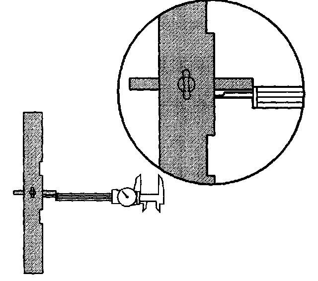 21. With the gage rod of the J 44388-1 (1) fully seated on the shim land for the left differential side bearing shim, tighten the thumbscrew on the J 44388-1 (1).