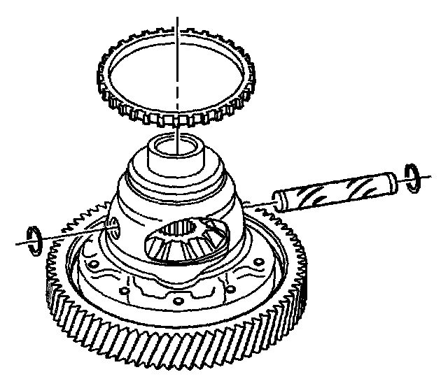 24. Remove and discard both the differential pinion shaft retaining rings and remove the differential pinion shaft.