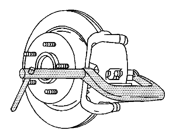 7. Install a large C-clamp over the body of the brake caliper with the C-clamp ends against the rear of the caliper body and against the outer brake pad.