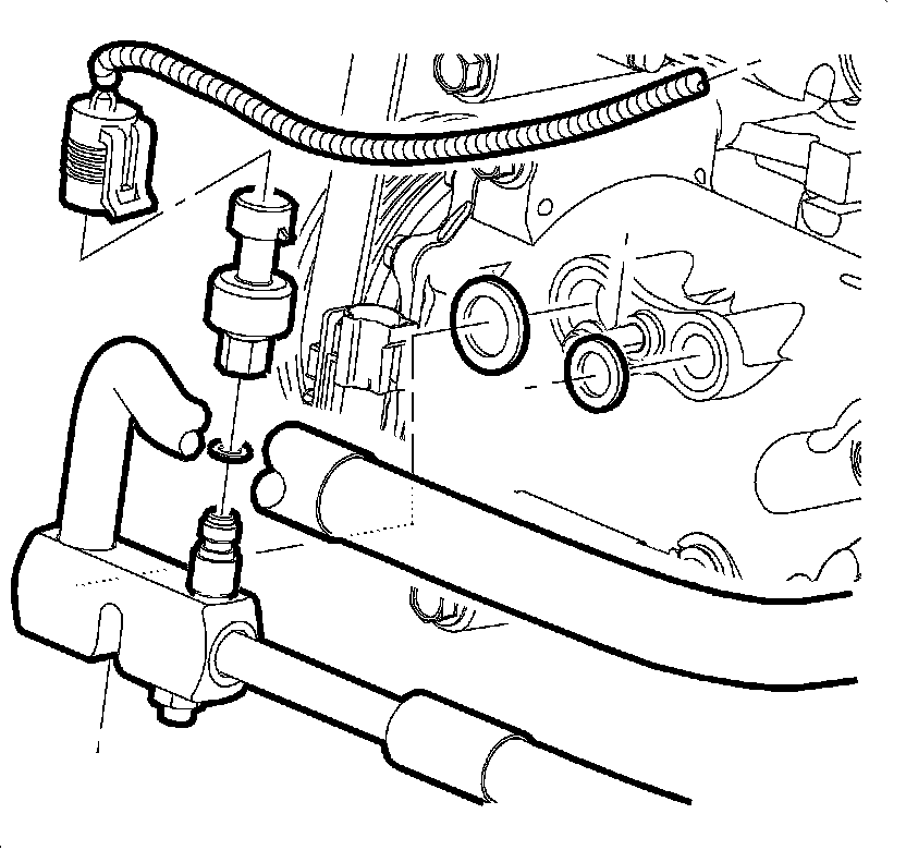 1. Install new seal washers to the TXV and the condenser ends of the compressor hose.