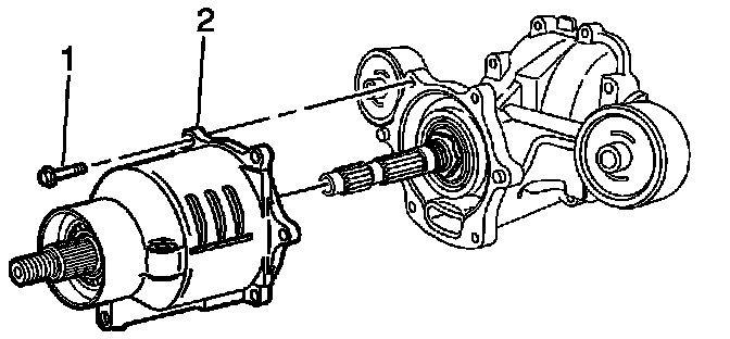 6. Hand install the RDM clutch housing cover (1) and bolts (2) to the RDM differential housing, and then tighten bolts.