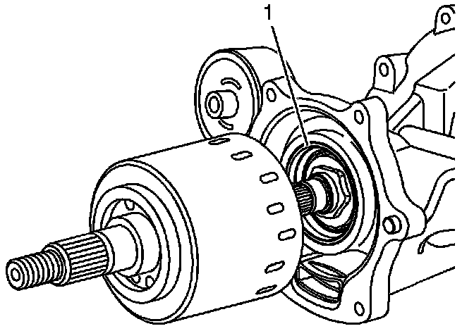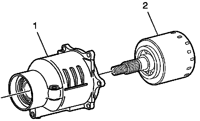 4. Install the NEW clutch drum (1) (P/N 15235314) onto the pinion shaft (2).