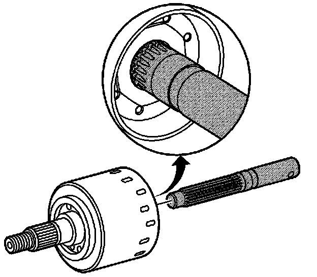 3. Align the RDM clutch with the pump and pump bushing using alignment tool J46607, Place the alignment tool J46607 in the splines of the clutch. Twist alignment tool back and forth to align the pump and bushing. With a properly aligned clutch, the groove on the alignment tool J46607 will be flush with the drum. Remove the alignment tool by pulling straight out.
