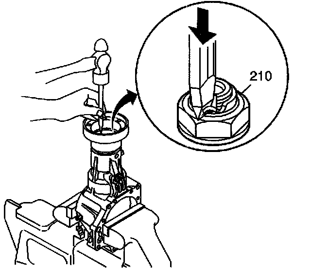 11. Using a chisel, cut the locking tab on the locknut (210).