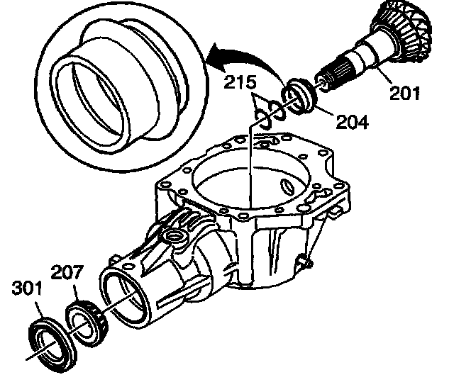 17. Remove the seal (301) and bearing (207).