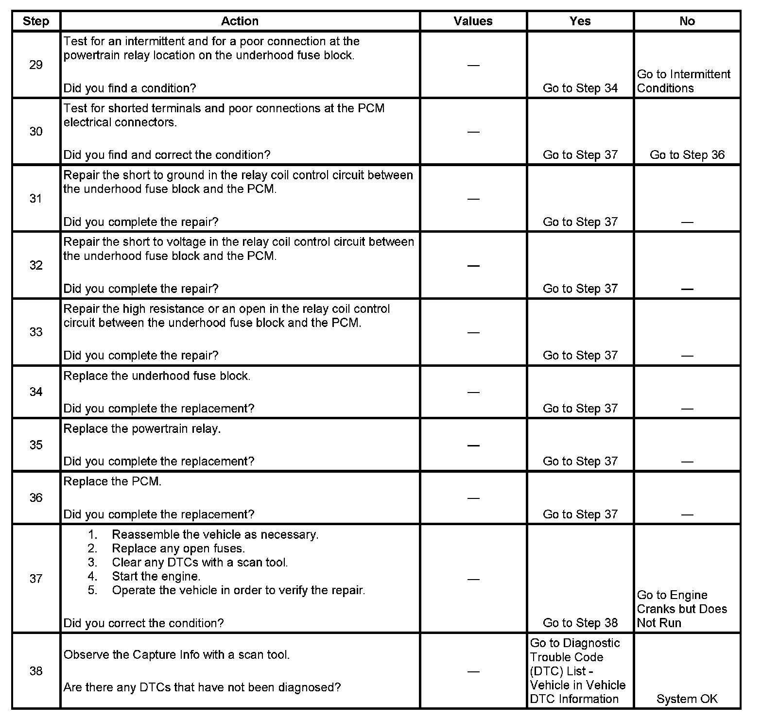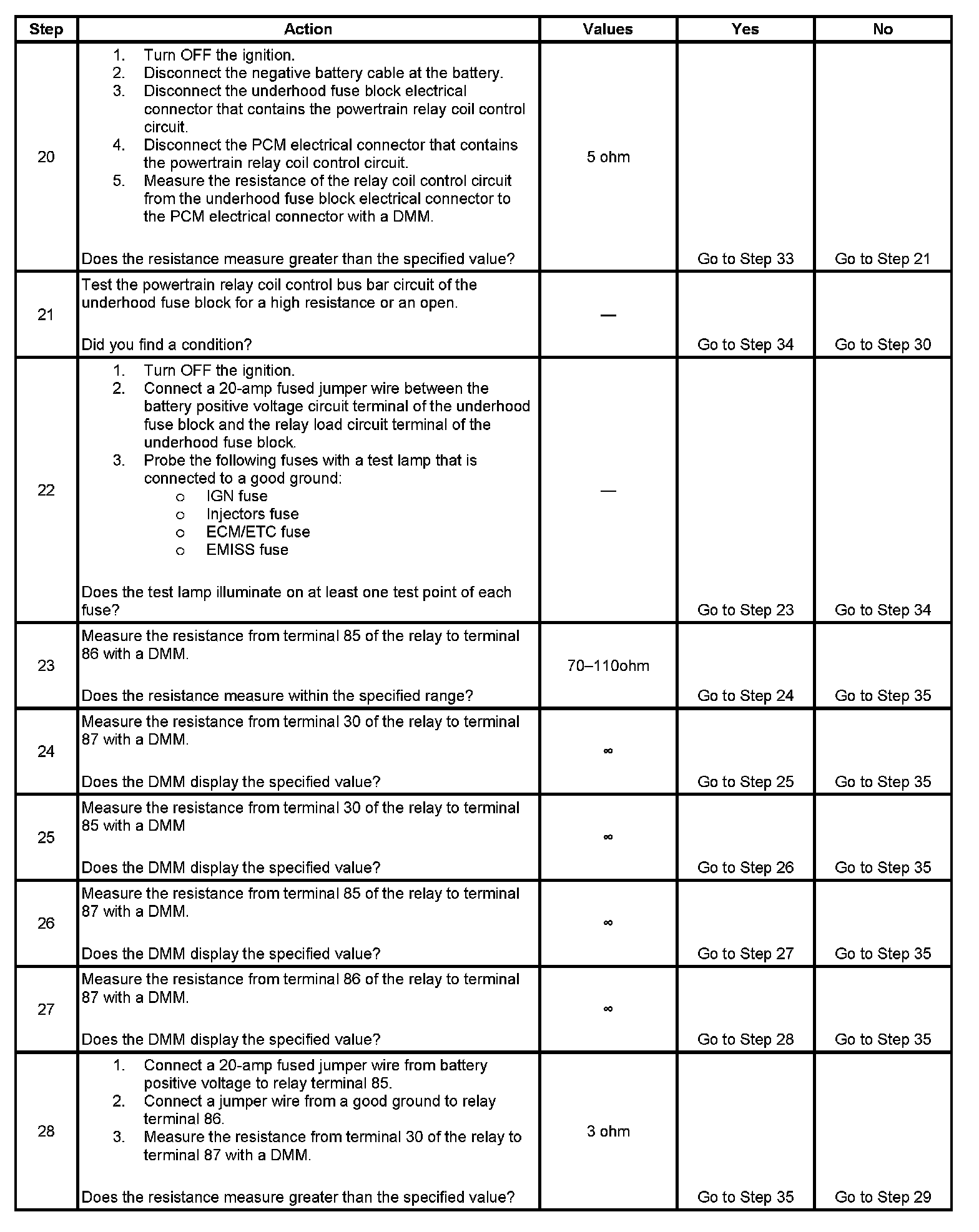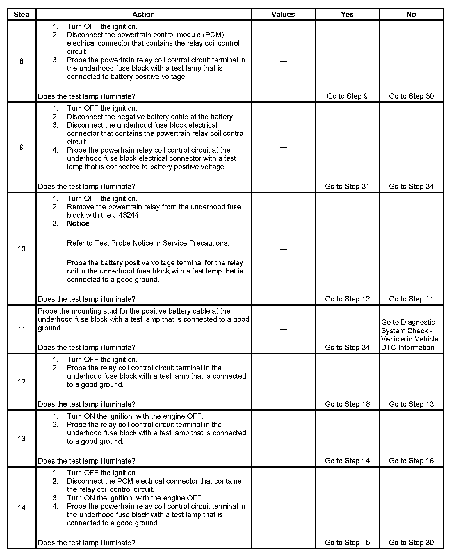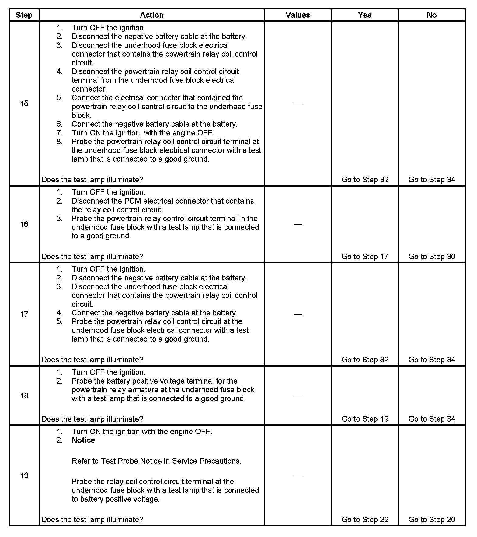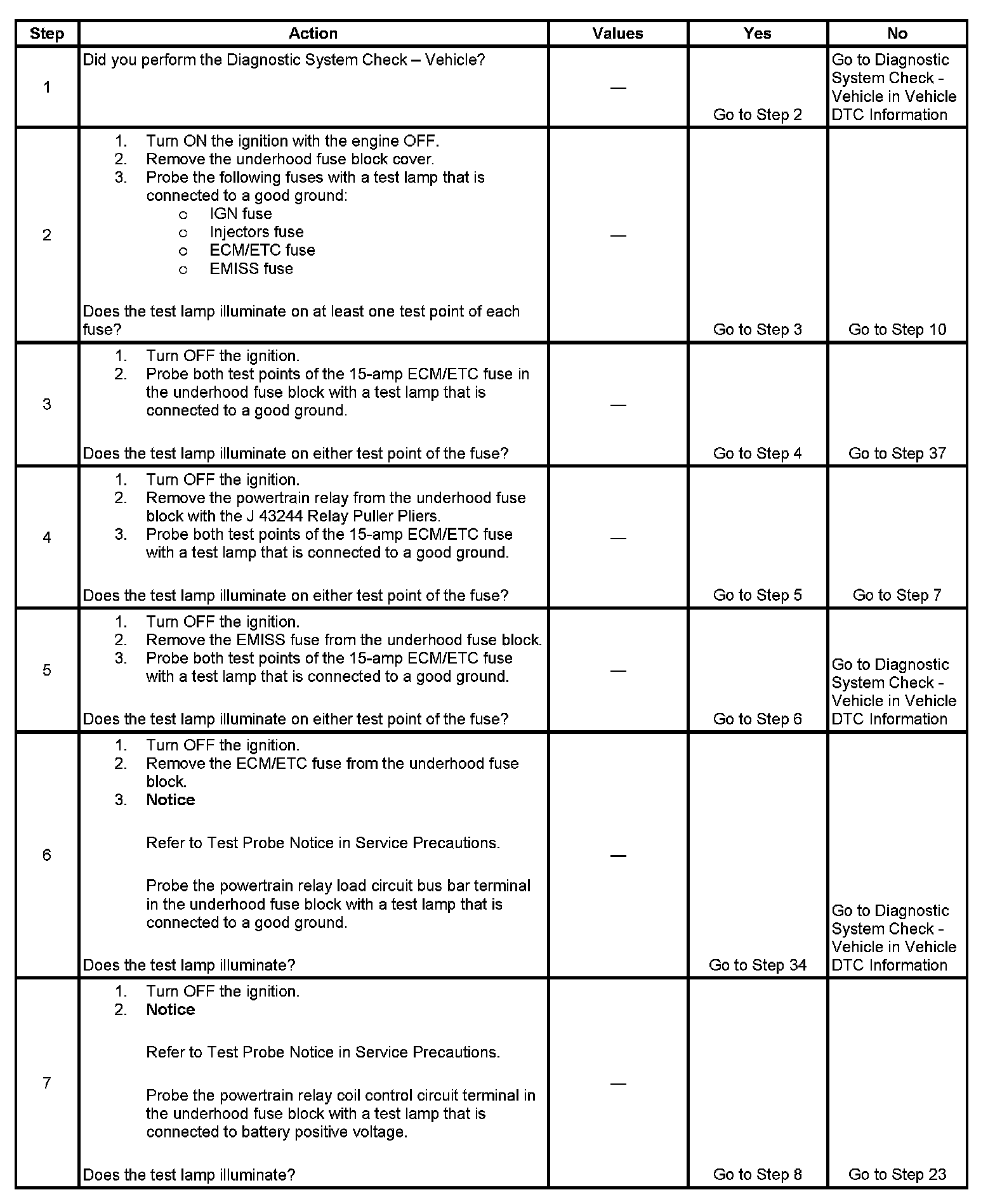 The powertrain relay system diagnosis table assumes that the vehicle battery is fully charged. Refer to Battery Inspection/Test in Starting and Charging. Battery Inspection/Test