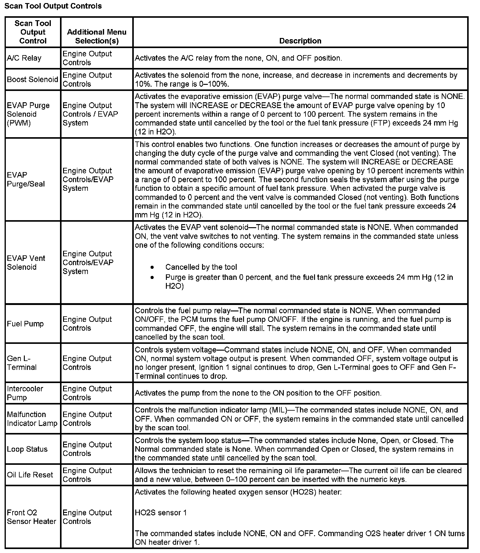 Scan Tool Output Controls