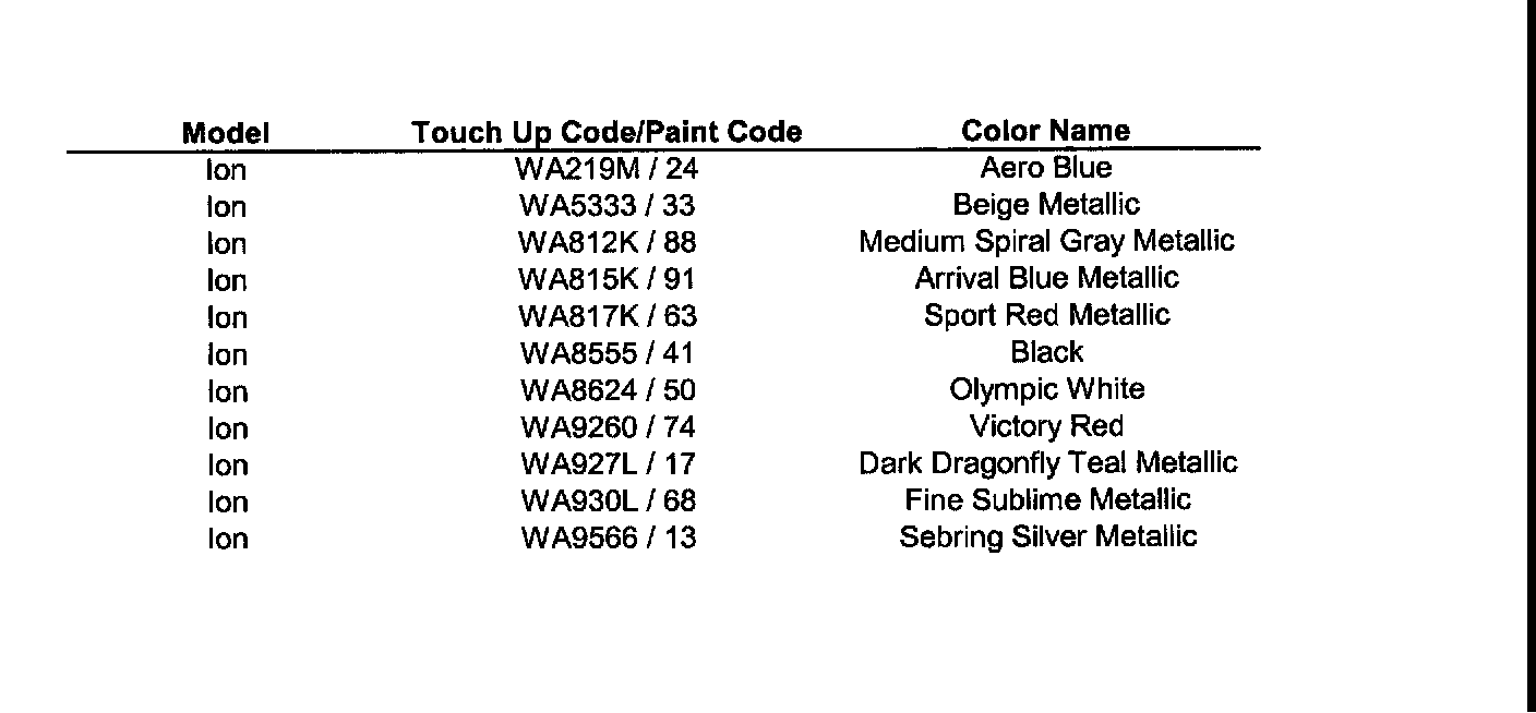 Paint Code Charts