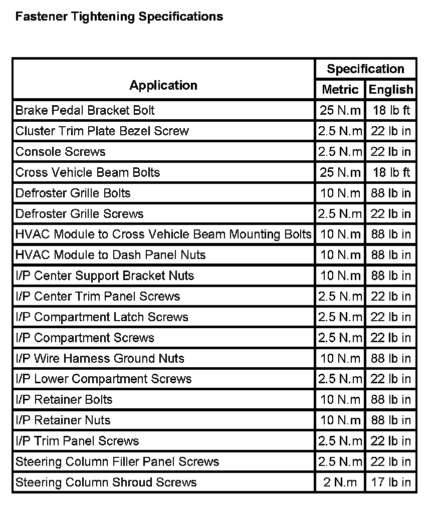 Instrument Panel, Gauges and Warning Indicators: Specifications