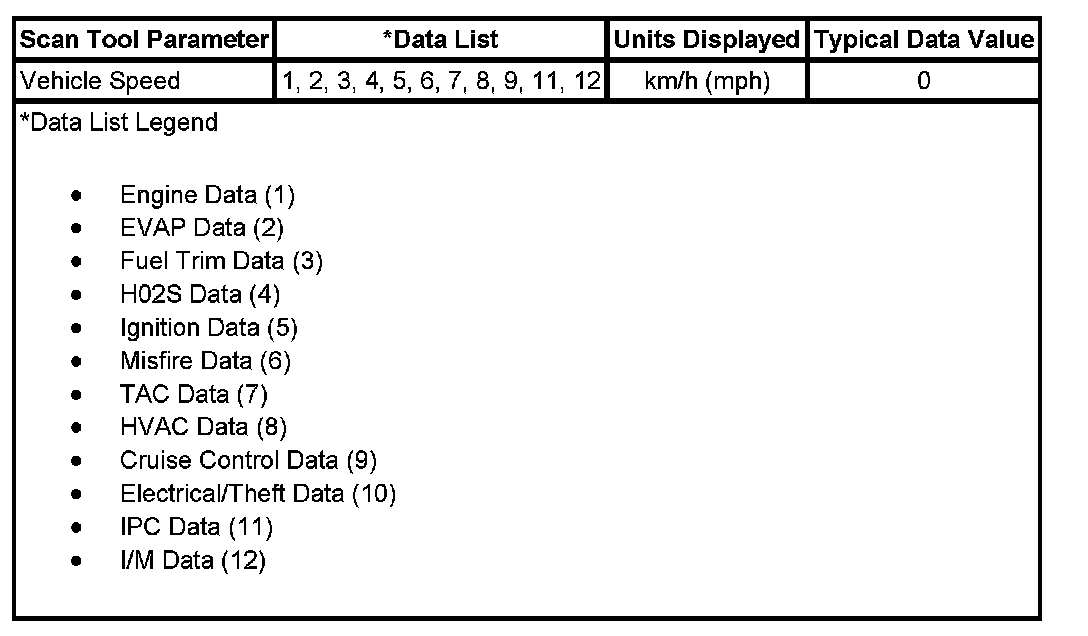 Only the parameters listed below are used in this manual for diagnosing. If a scan tool displays other parameters, the values are not recommended by General Motors for use in diagnosis.
