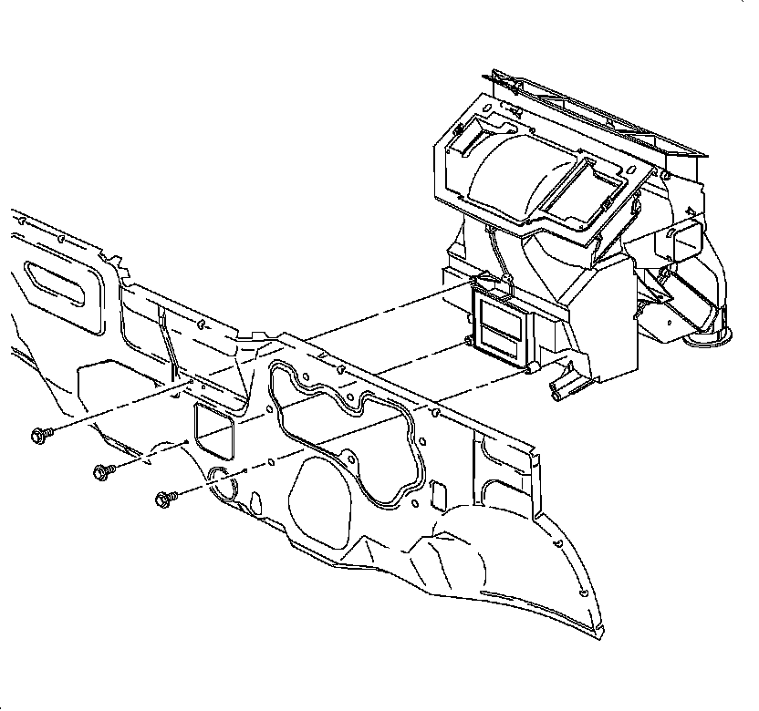 7. Tighten the bolts that secure the HVAC module to the front of the dash.