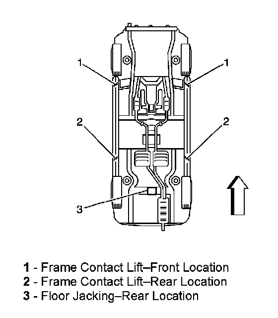 - Perform the vehicle lifting or jacking procedure only at the identified lift points. DO NOT allow the lifting equipment or jacking equipment to contact any other vehicle components.