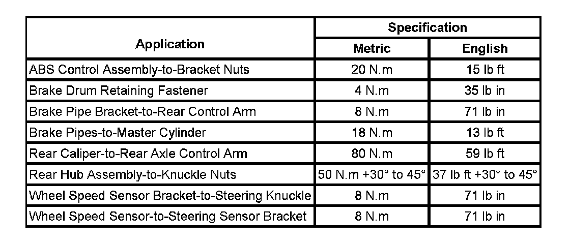 Fastener Tightening Specifications:
