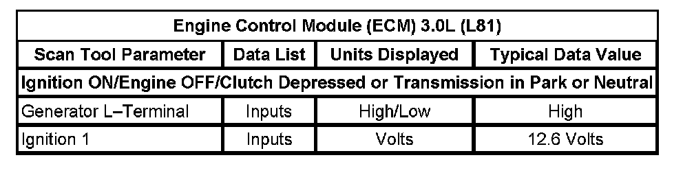 Normal Scan Tool Data Values - Engine Control Module (ECM)