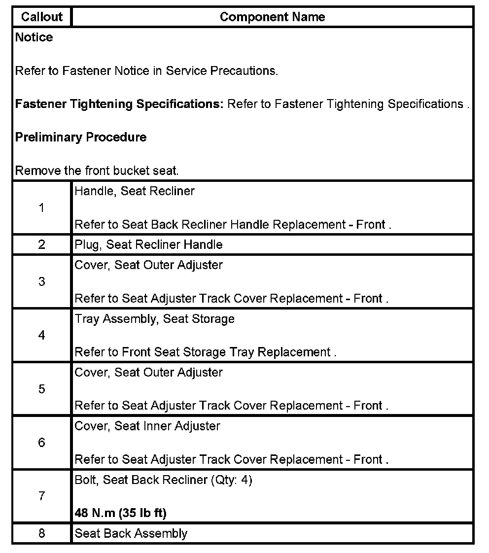 Seat Back Replacement - Front